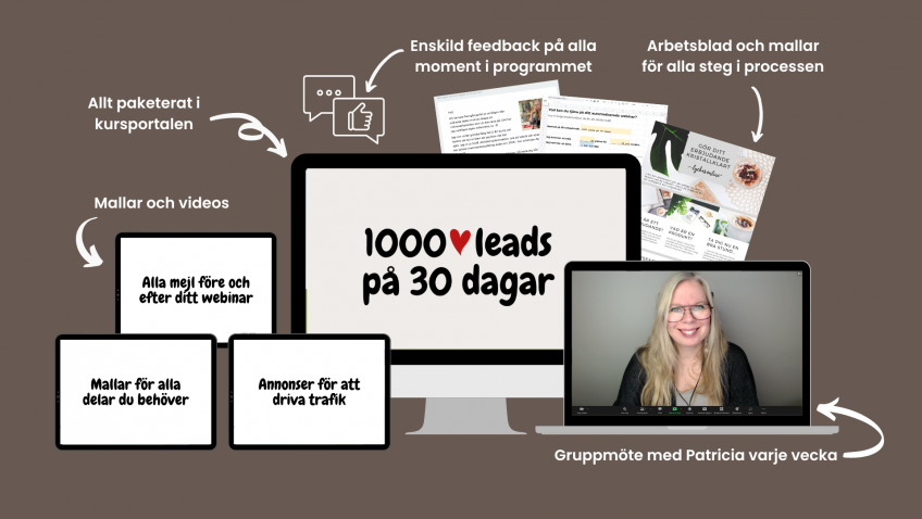 Det mest unika med 1000 leads på 30 dagar är att du får privat feedback på allt material du lämnar in under programmet. Skrifligt och/eller med en video där jag kommenterar och förklarar vad jag menar att du kan förändra för att öka din försäljning.